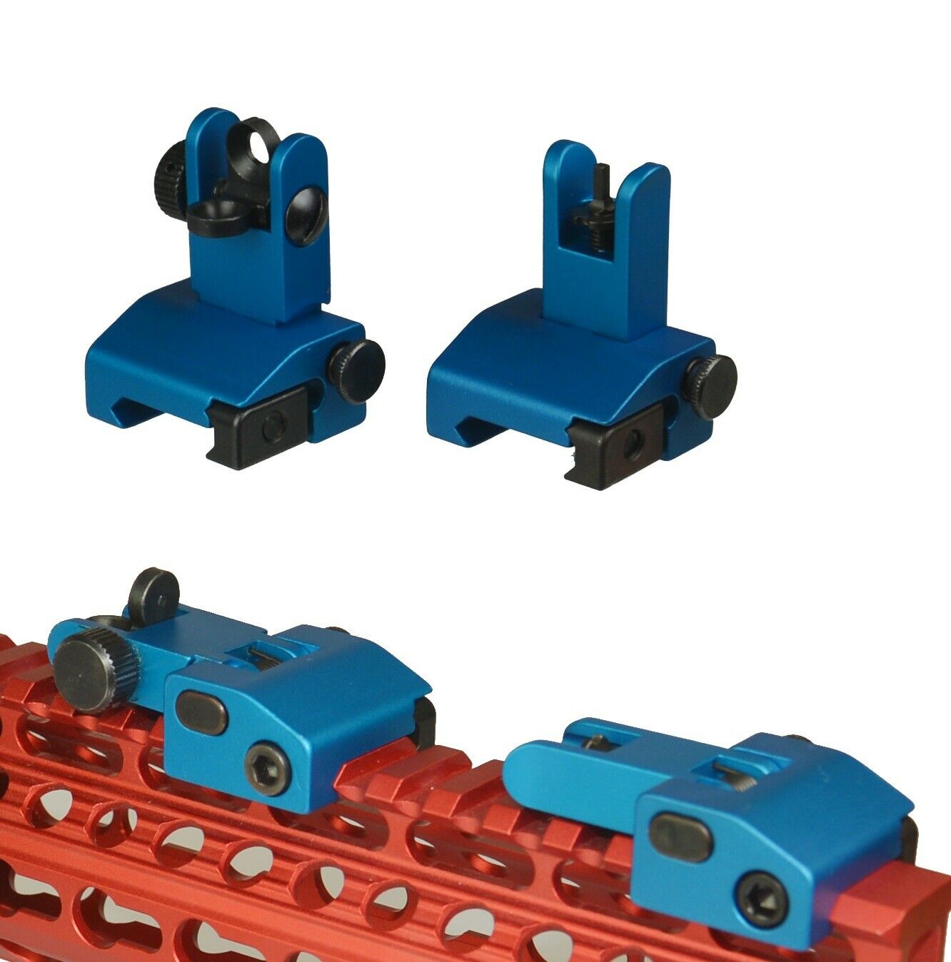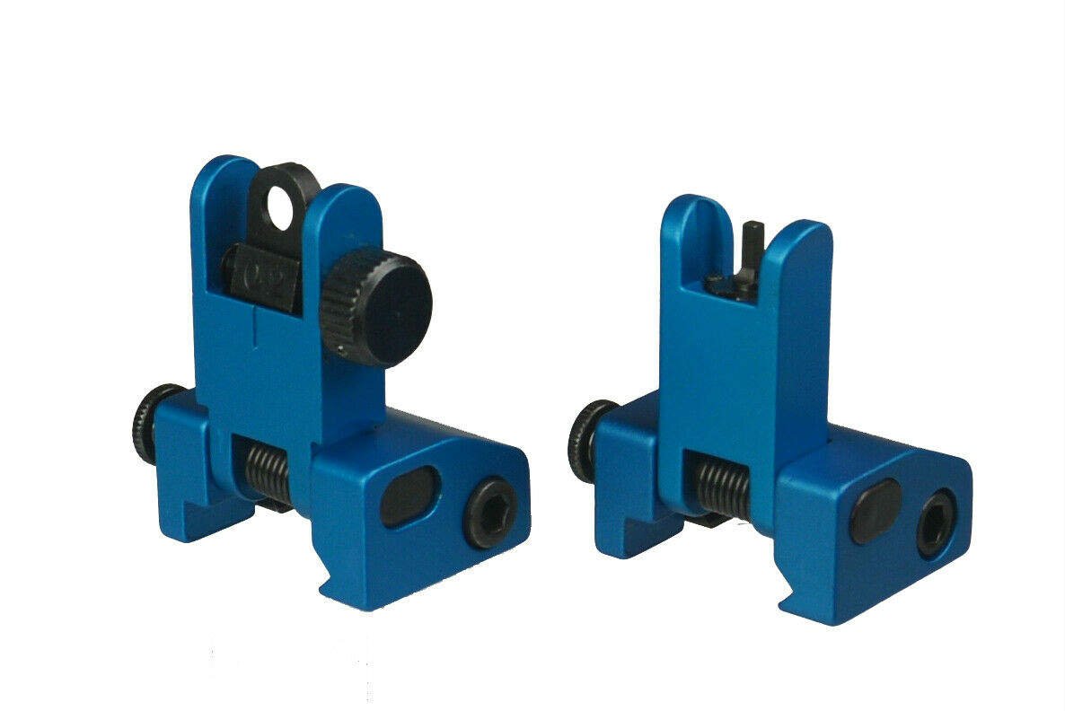 DB TAC Aluminum Blue Color Iron Sights Front and Rear Flip Up For Picatinny/Weaver Rail