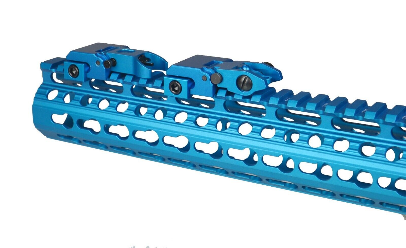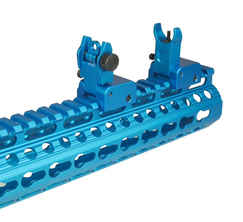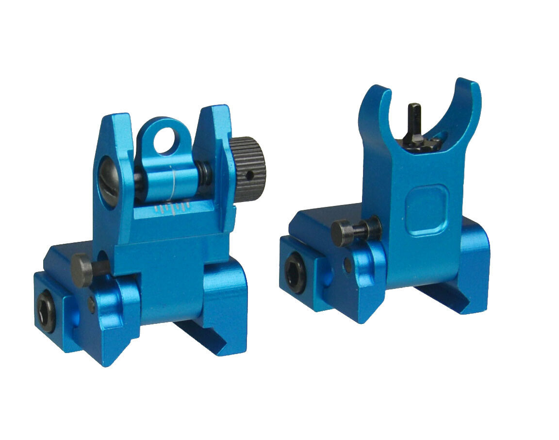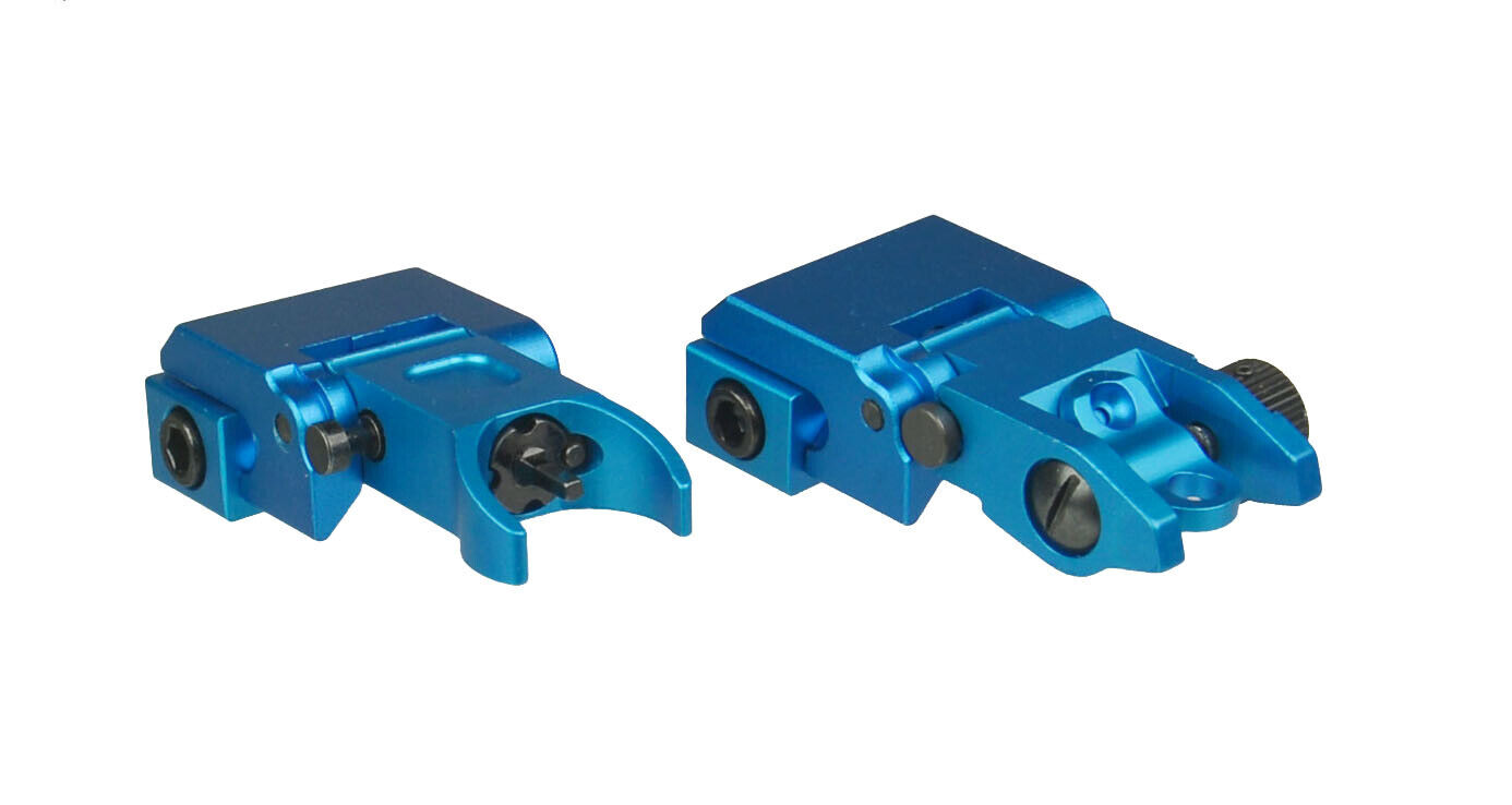 DB TAC Aluminum Blue Color Picatinny/Weaver Rails Iron Sight BUIS Front and Rear Flip-Up Sight Set