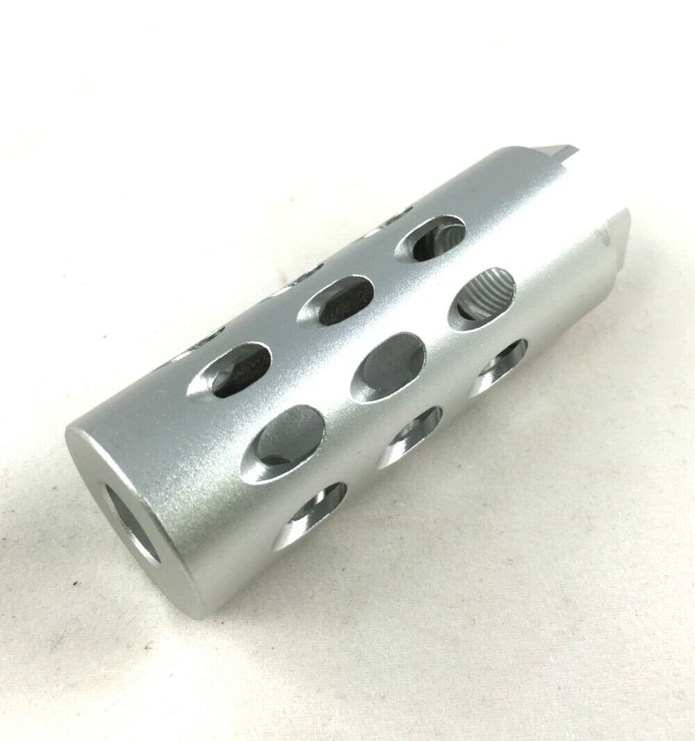 Package includes: 1 × silver aluminum muzzle brake / compensator .