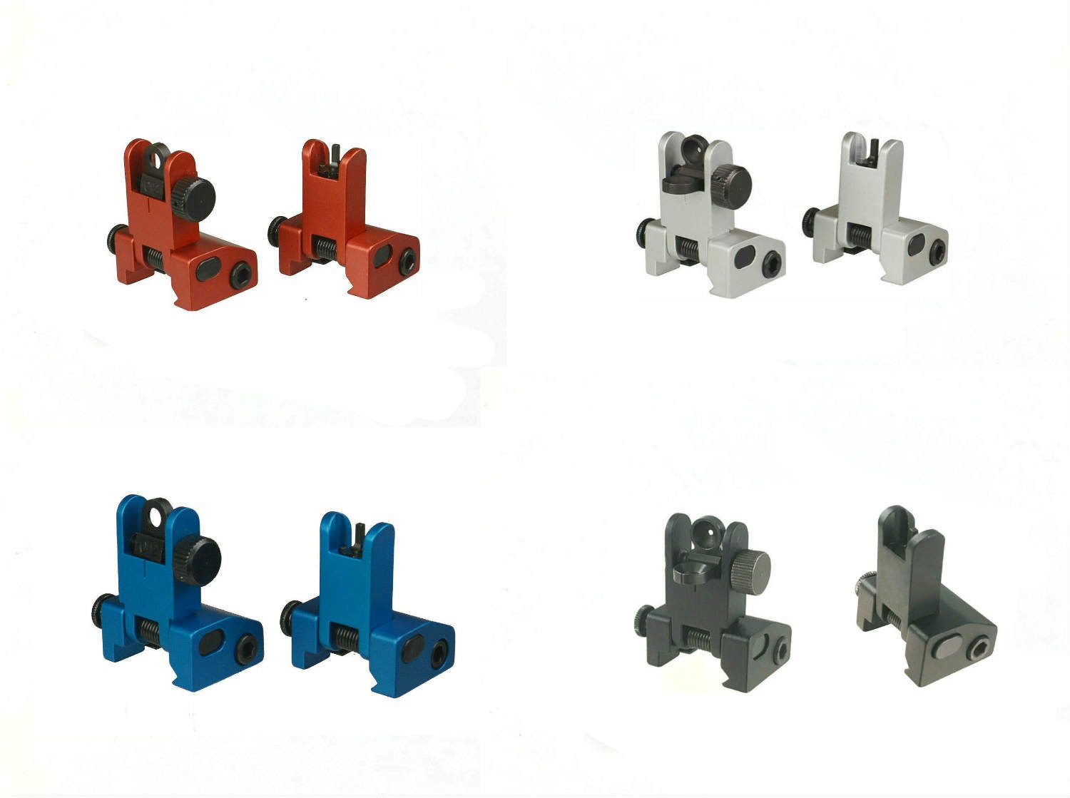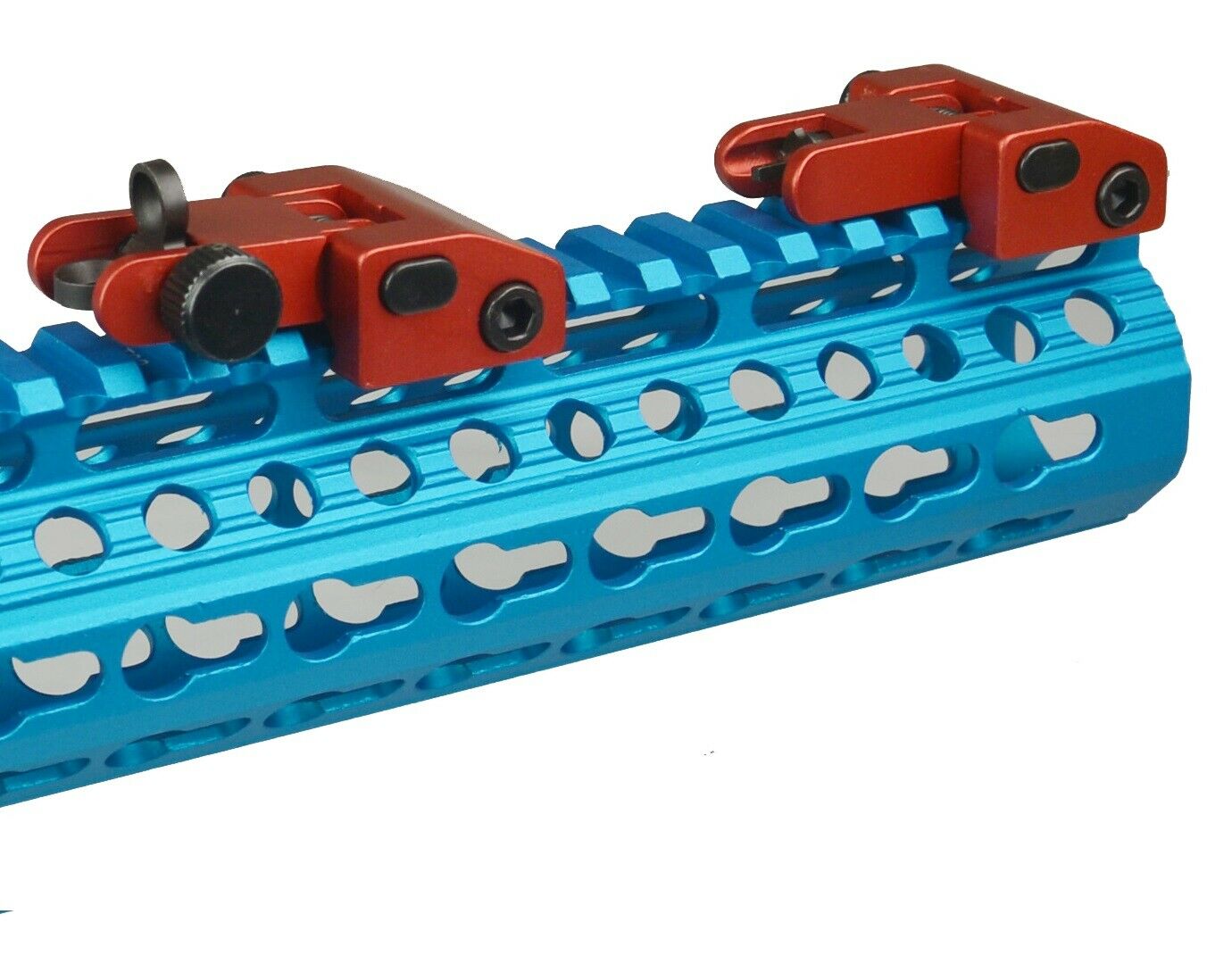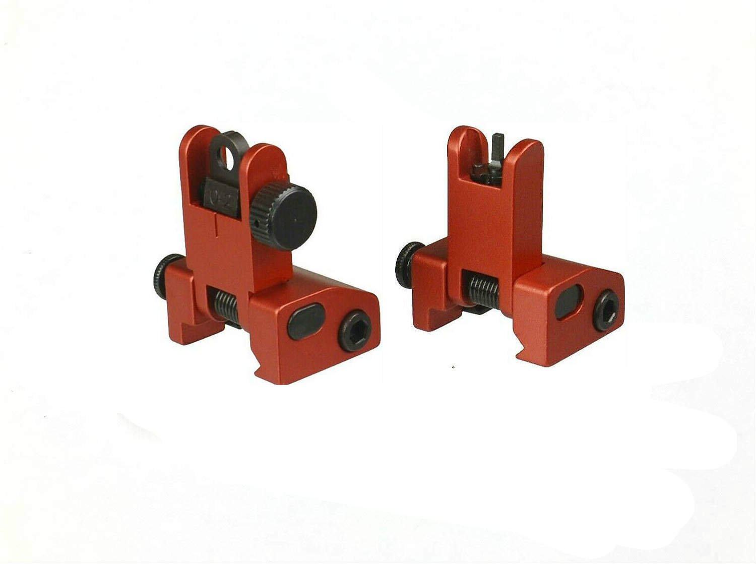 DB TAC Aluminum Red Color Iron Sights Front and Rear Flip Up For Picatinny/Weaver Rail