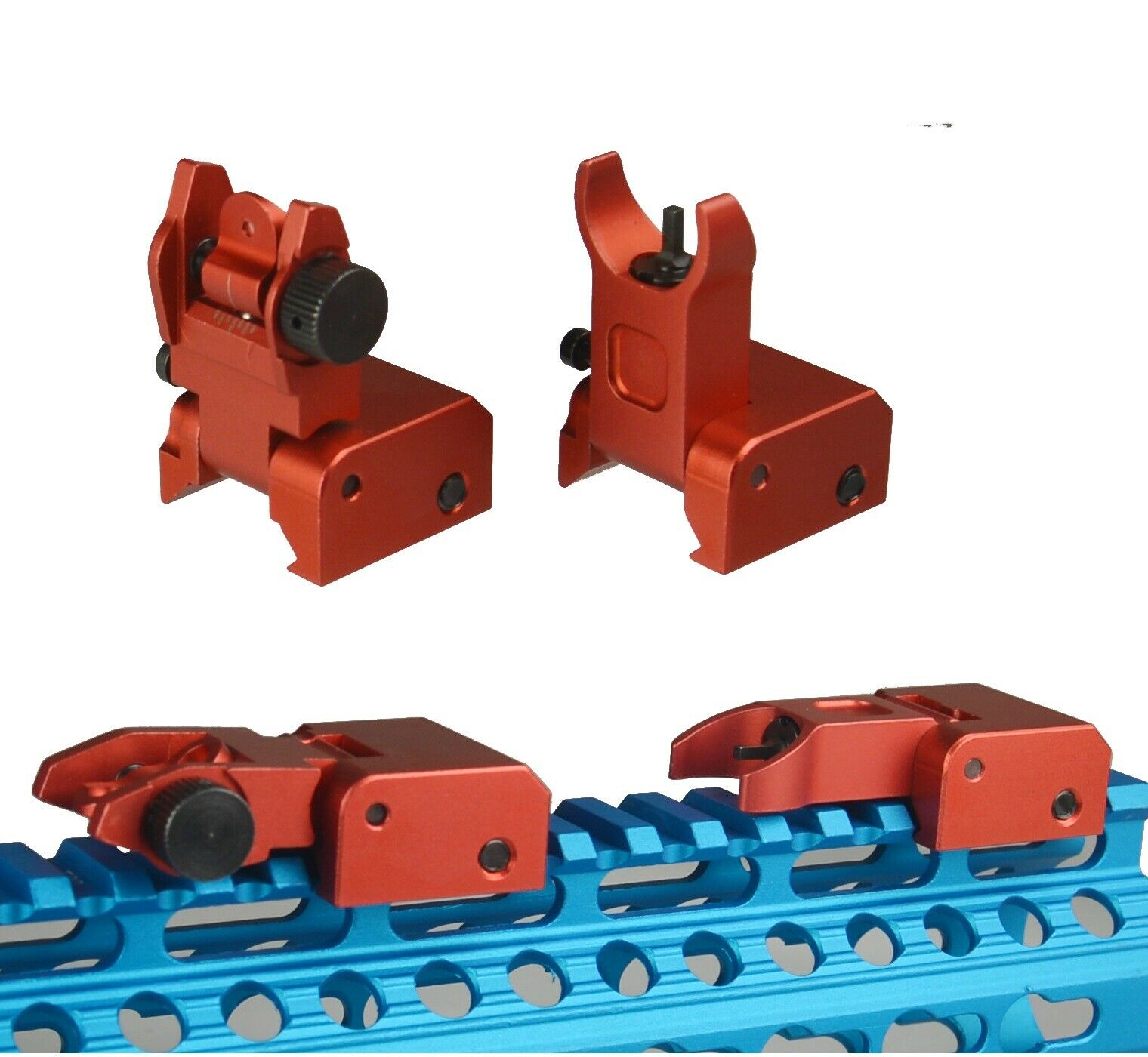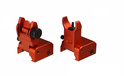 DB TAC Aluminum Red Color Picatinny/Weaver Rails Iron Sight BUIS Front and Rear Flip-Up Sight Set