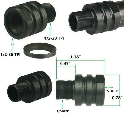 - Adapter Convert From 1/2”x36 TPI Thread to 1/2”x28 TPI Thread