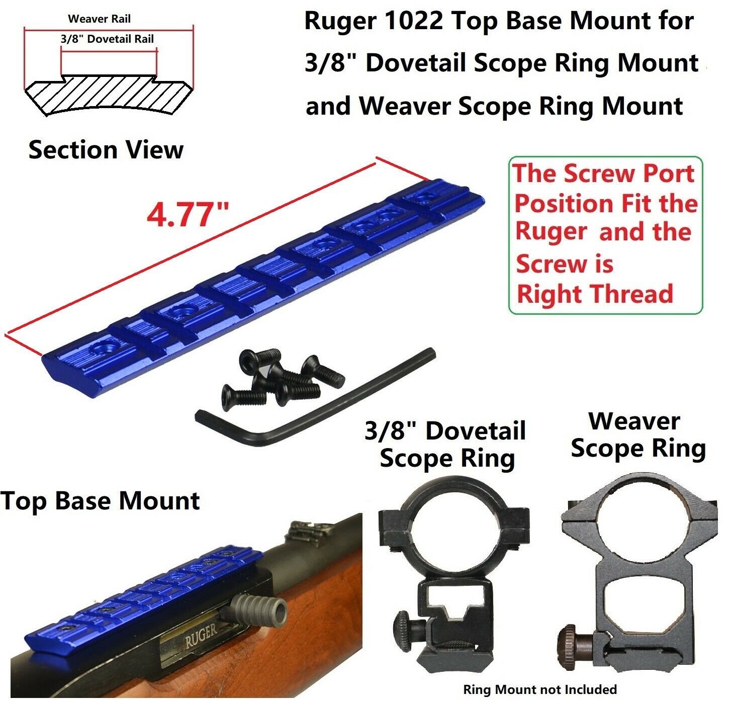 DB TAC Ruger 10/22 Scope Mount Red Green Dot Sight 4 MOA 1x Picatinny Dovetail Blue