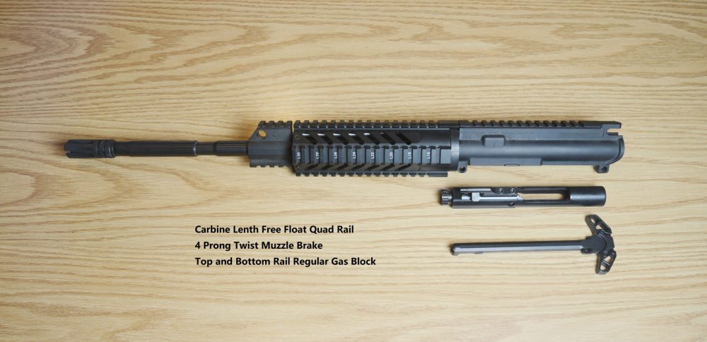DB TAC INC Complete upper has an 16” barrel 1:7 Twist and Carbine length gas system. The assembly includes a Handguard, a forged upper receiver, bolt carrier group, Muzzle Brake, and ambidextrous charging handle. This complete upper receiver is chambered in .223/5.56 NATO