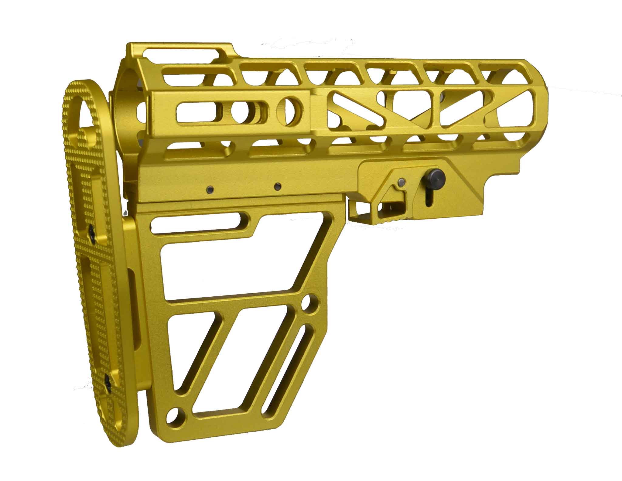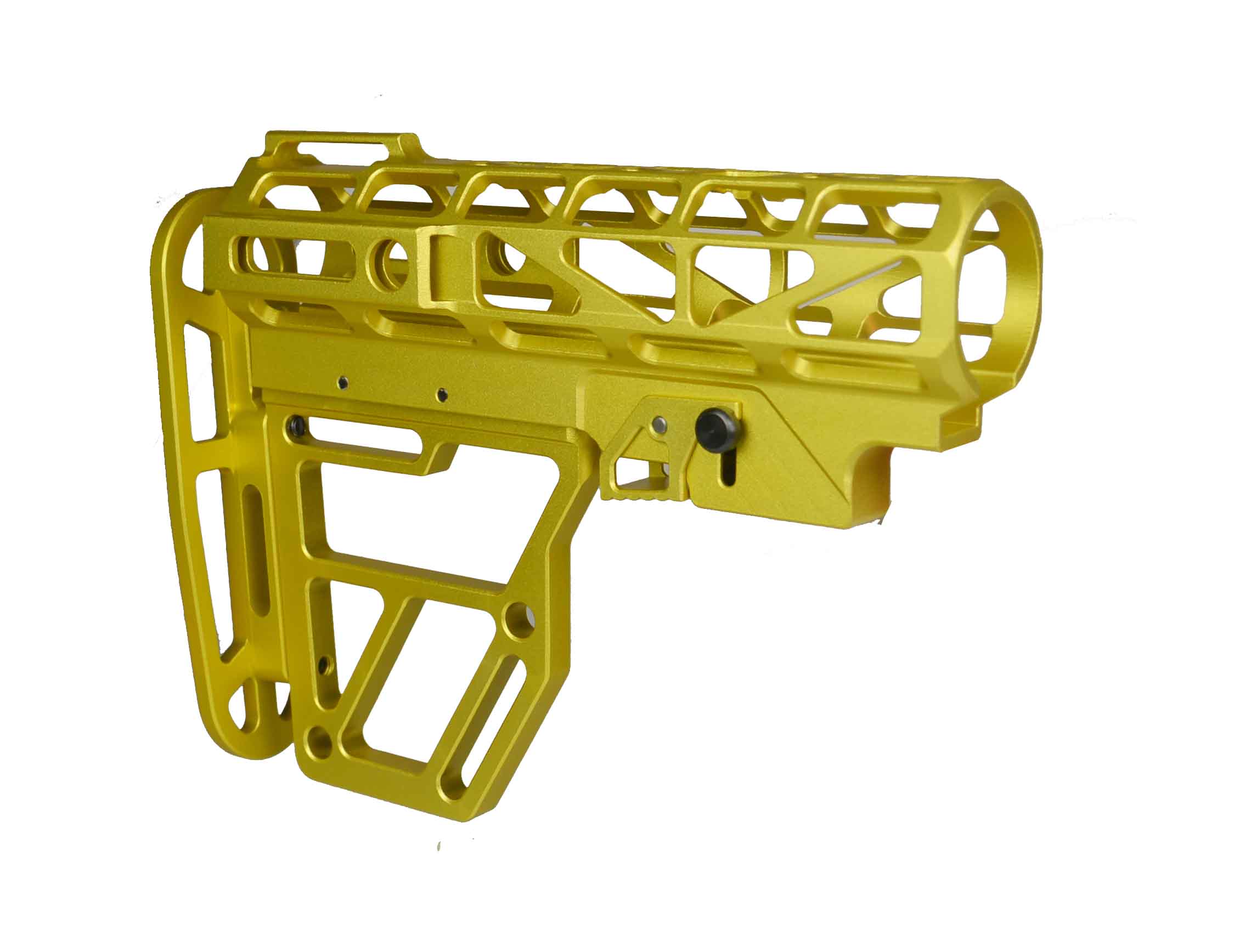 DB TAC Gold Color Anodized Skeleton Fin 6 Position Buttstock Clamp For Mil-Spec 6 Position Tube