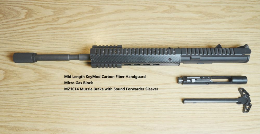 DB TAC INC Complete upper has an 16” barrel 1:7 Twist and Mid length gas system. The assembly includes a Key-Mod Carbon Fiber, a forged upper receiver, bolt carrier group, Muzzle Brake, and ambidextrous charging handle. This complete upper receiver is chambered in .223/5.56 NATO