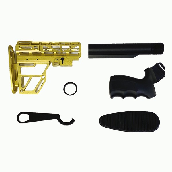 DB TAC Mil-Spec 6 Position Tube Gold Color Stock Combo For Mossberg 500 Maverlck 88 12 Gauge and 20 Gauge