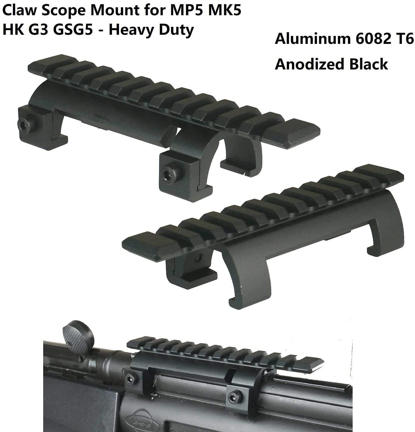 DB TAC New Design MP5 H&K GSG-5 Claw Scope Mount, Aluminum T6 Anodized Black Color