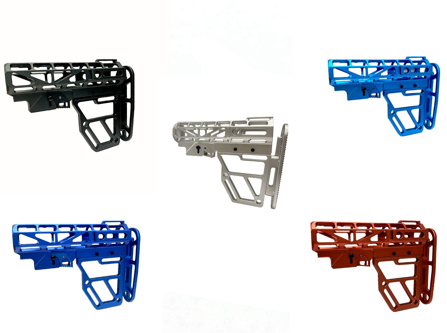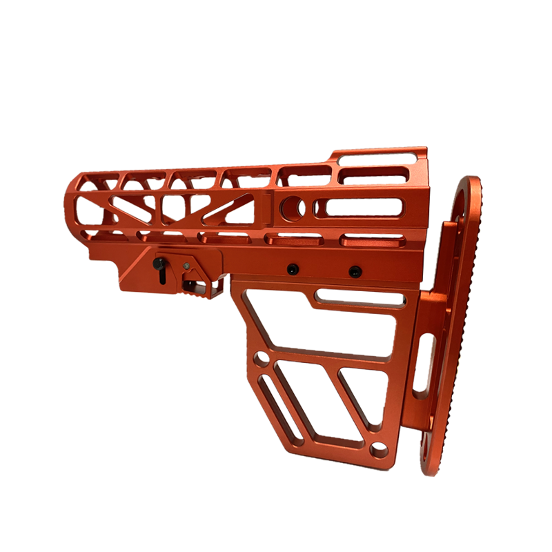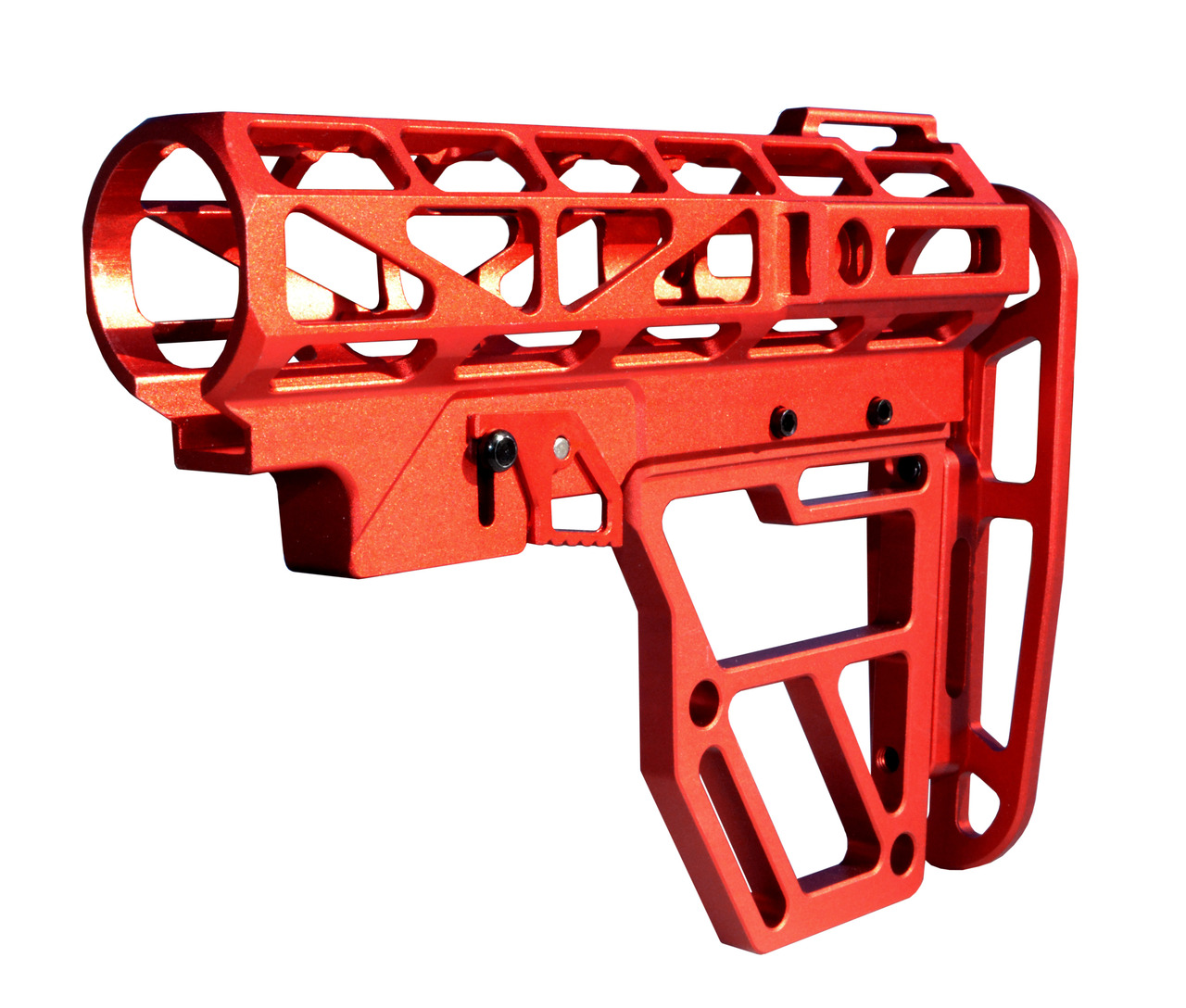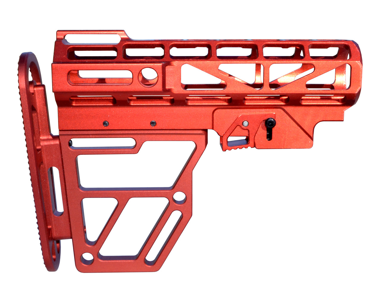 Skeletonized 223/5.56/308 Mil Spec Buttstock, Red Anodized Aluminum.