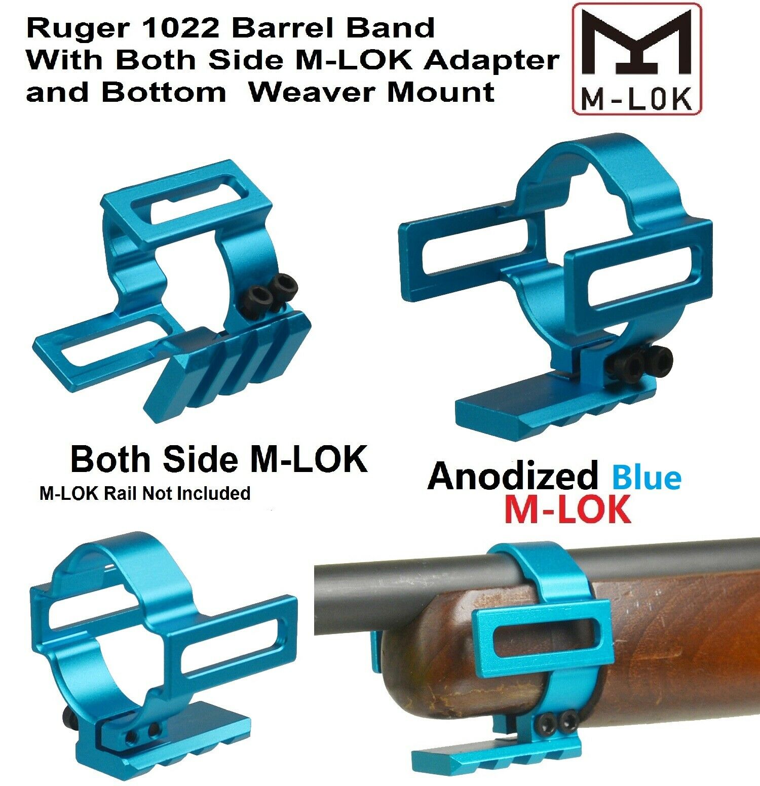 DB TAC Barrel Band For Ruger 10/22 Anodized Blue Color Aluminum 1022 Band