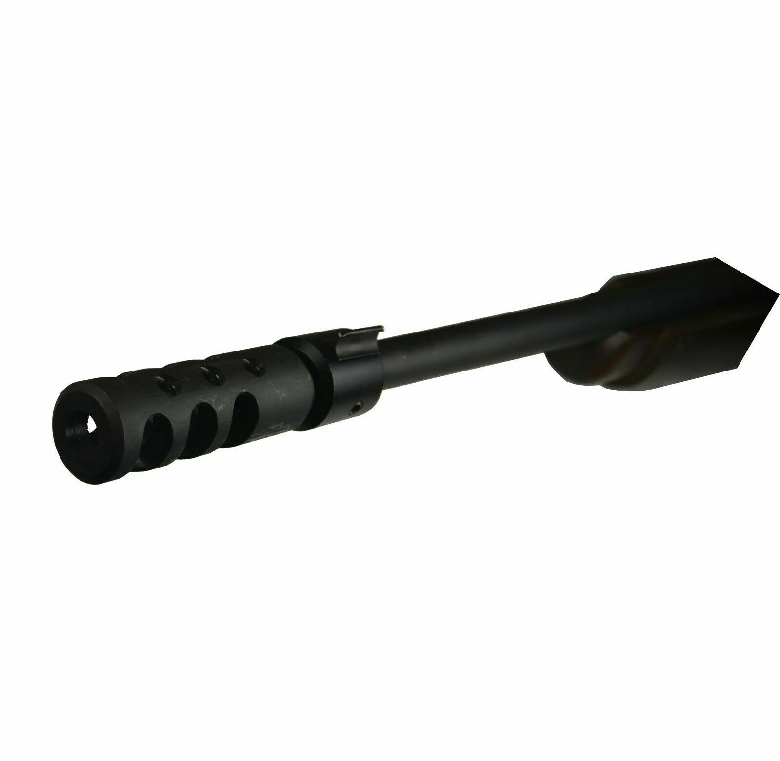 This listing includes a CNC-machined steel muzzle brake threaded 1/2″×28 TPI plus a Ruger 10/22 thread adapter (Ruger → 1/2″×28). The muzzle brake reduces muzzle rise and felt recoil to speed up follow-up shots and improve shooter comfort. The adapter allows installation on Ruger 10/22 factory barrels with a 0.63″ barrel diameter — confirm your barrel diameter before purchase (Ruger changed barrel diameters on some newer models).