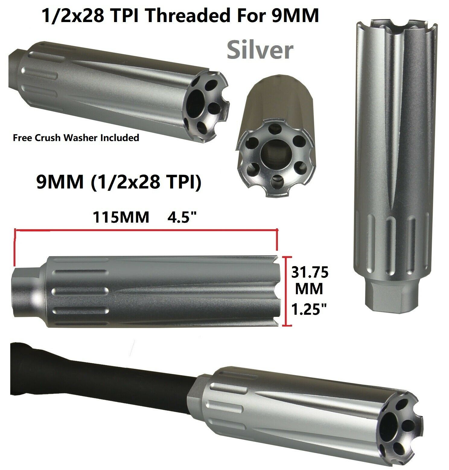DB TAC Muzzle Brake For Ruger 1022 10/22 Low Concussion Compensator 4.5 inch Extra Long 1/2×28 TPI Thread For .22LR Silver