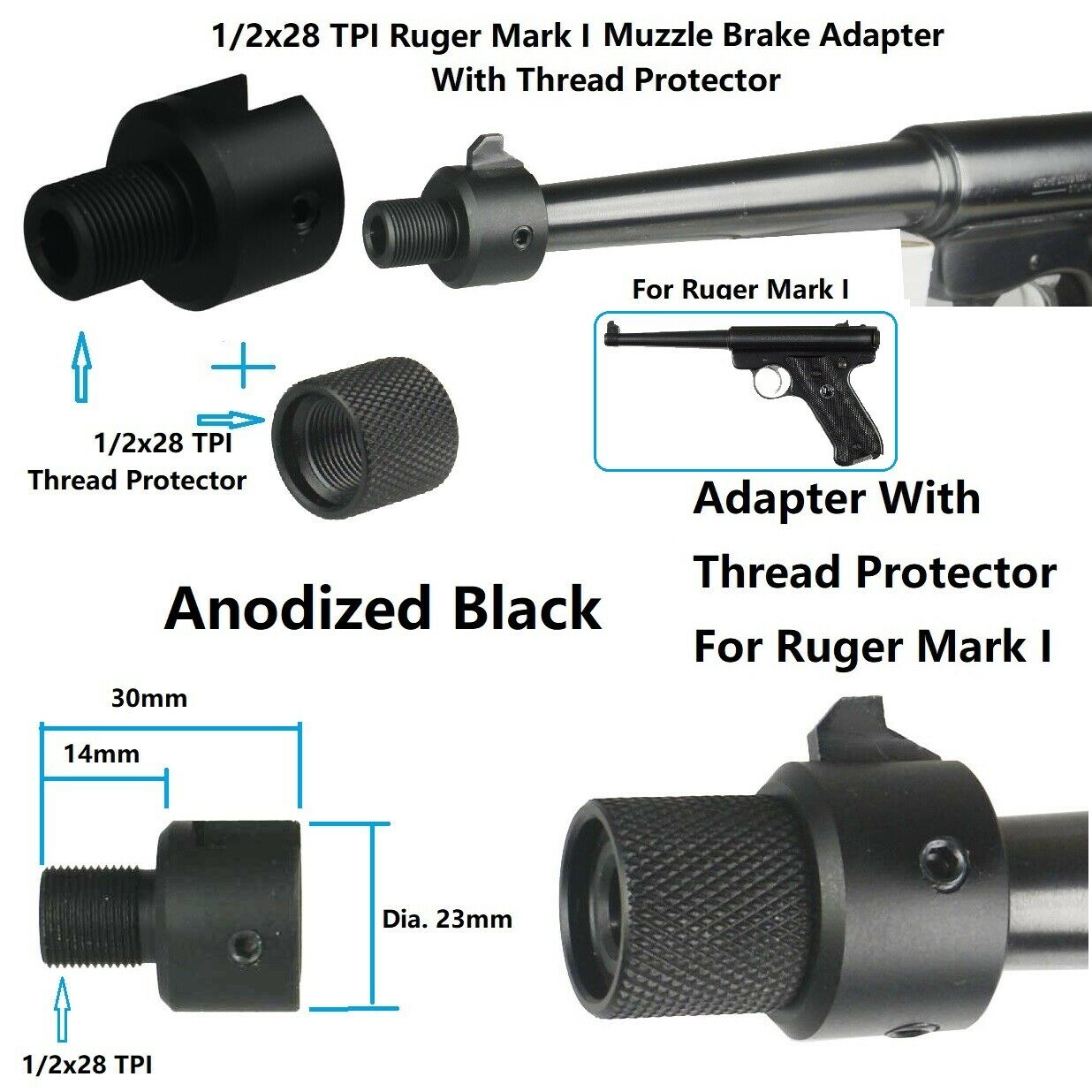 DB TAC Muzzle Brake For Ruger .22 Mark I Adapter With Thread Protector 1/2×28 TPI Thread Black Color