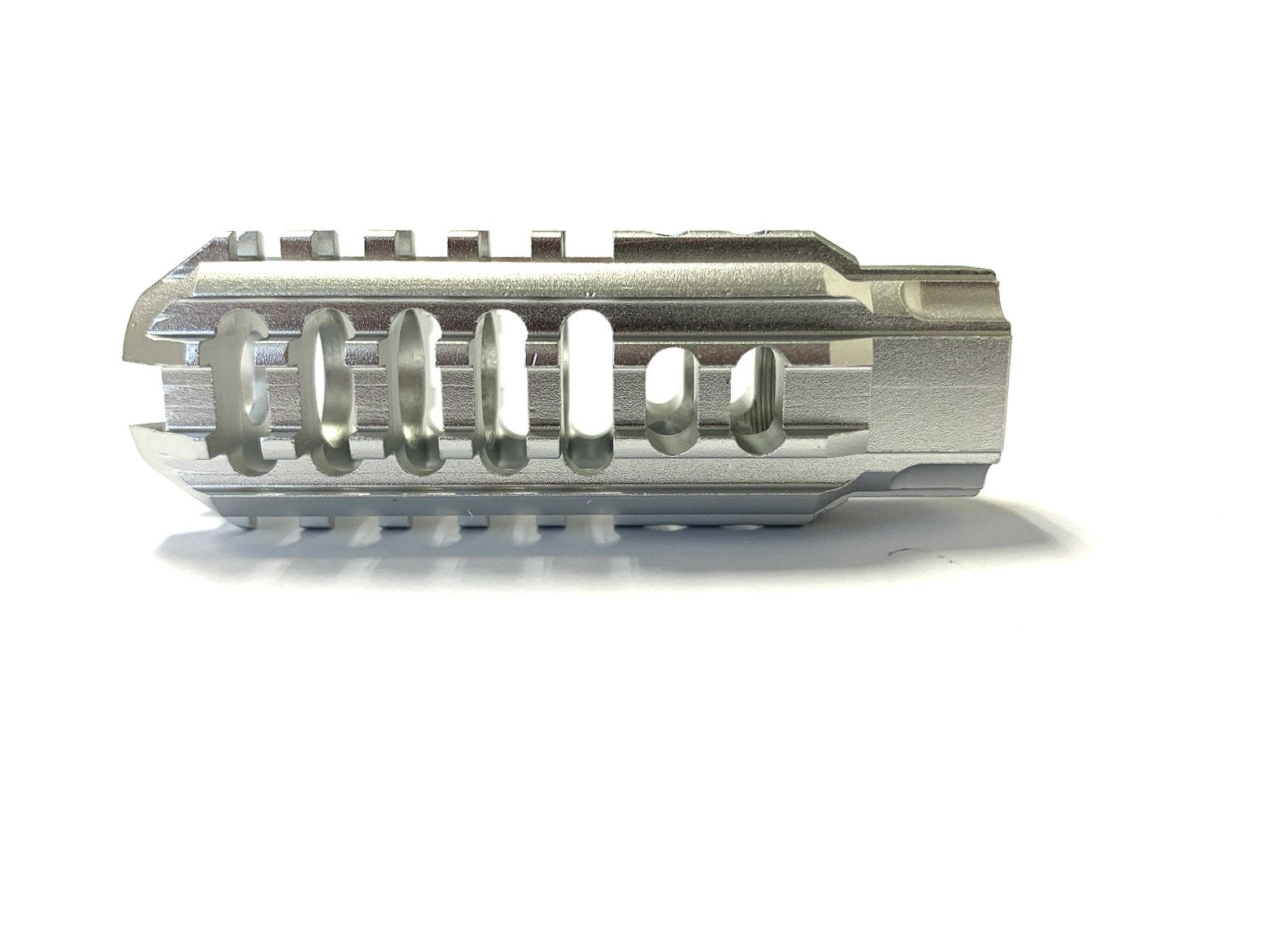 This aluminum muzzle brake is intended for light-use builds only. It is not recommended for rapid fire or automatic fire.