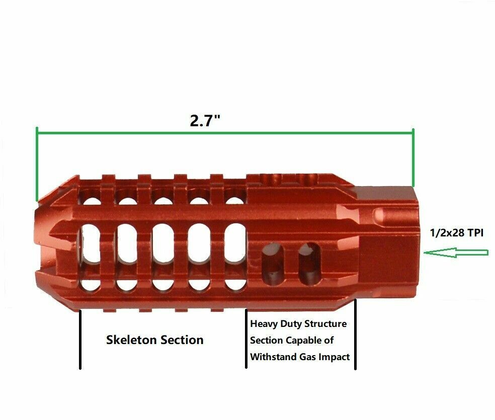 DB TAC Red Color Aluminum Skeleton Muzzle Brake Compensator 1/2×28 TPI Thread For Ruger PC Carbine 9mm