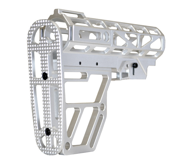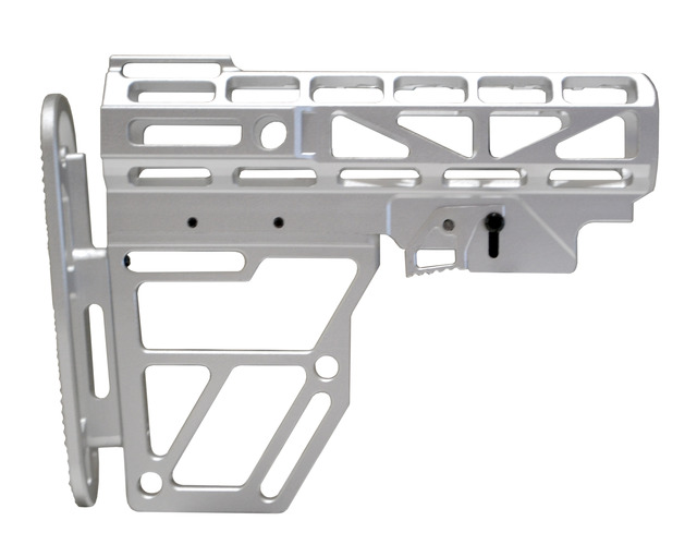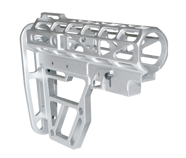 Skeletonized 223/5.56/308 Mil Spec Buttstock, Silver Anodized Aluminum.