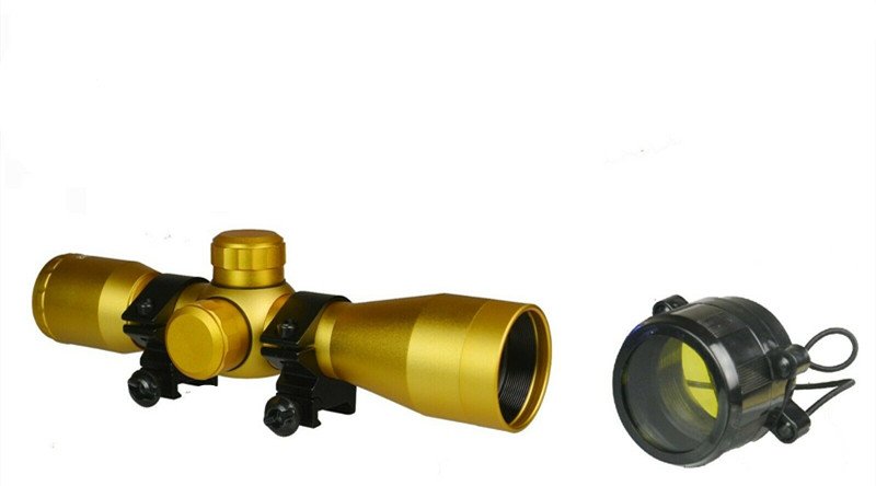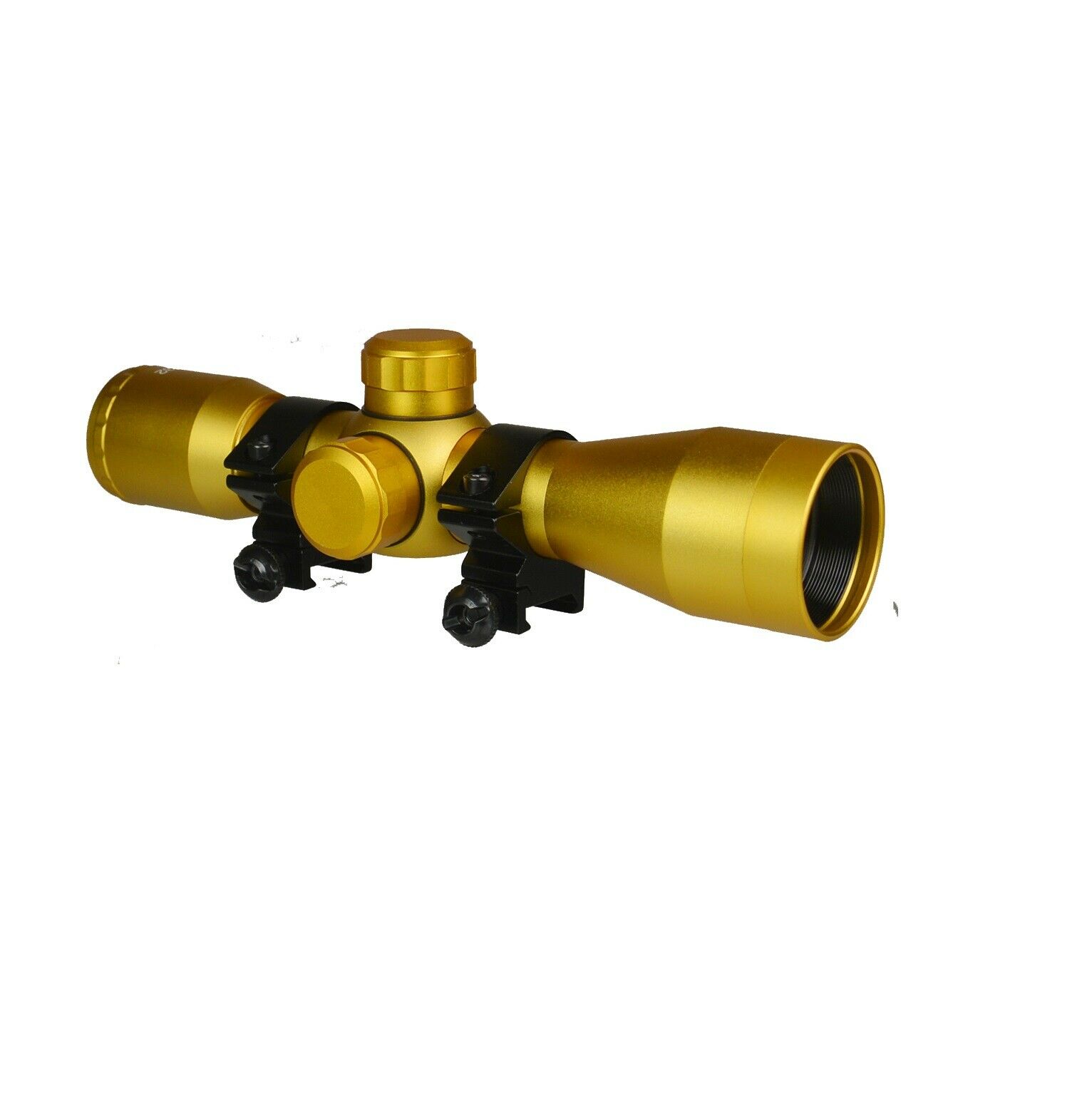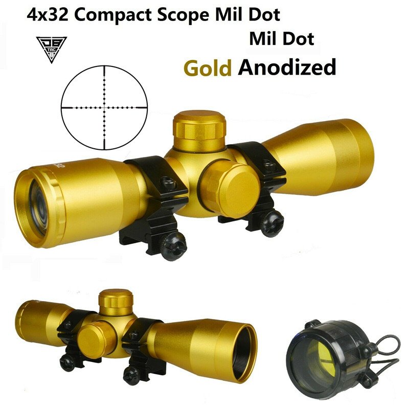 DB TAC Gold Color Hunting Tactical 4×32 Mil-Dot Compact Scope With Picatinny/Weaver Rails Rings Rifle Shotgun Target
