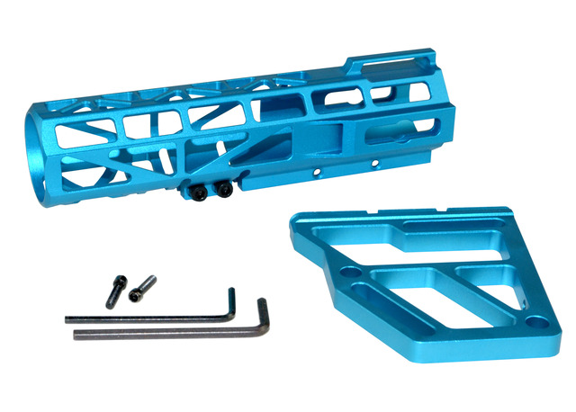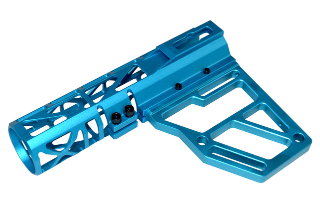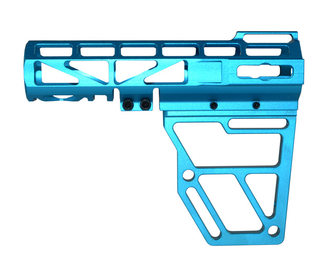 DB TAC Light Blue Color Anodized Skeleton Fin Position Stock Clamp With Tube,Skeletonized Pistol Arm Brace
