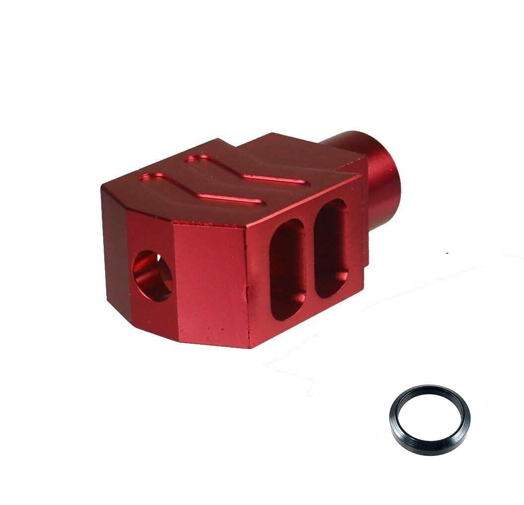 DB TAC 5/8×24 TPI Thread Tanker Muzzle Brake for .308 300BLK .338 350 Legend w/ Crush Washer, Red Color