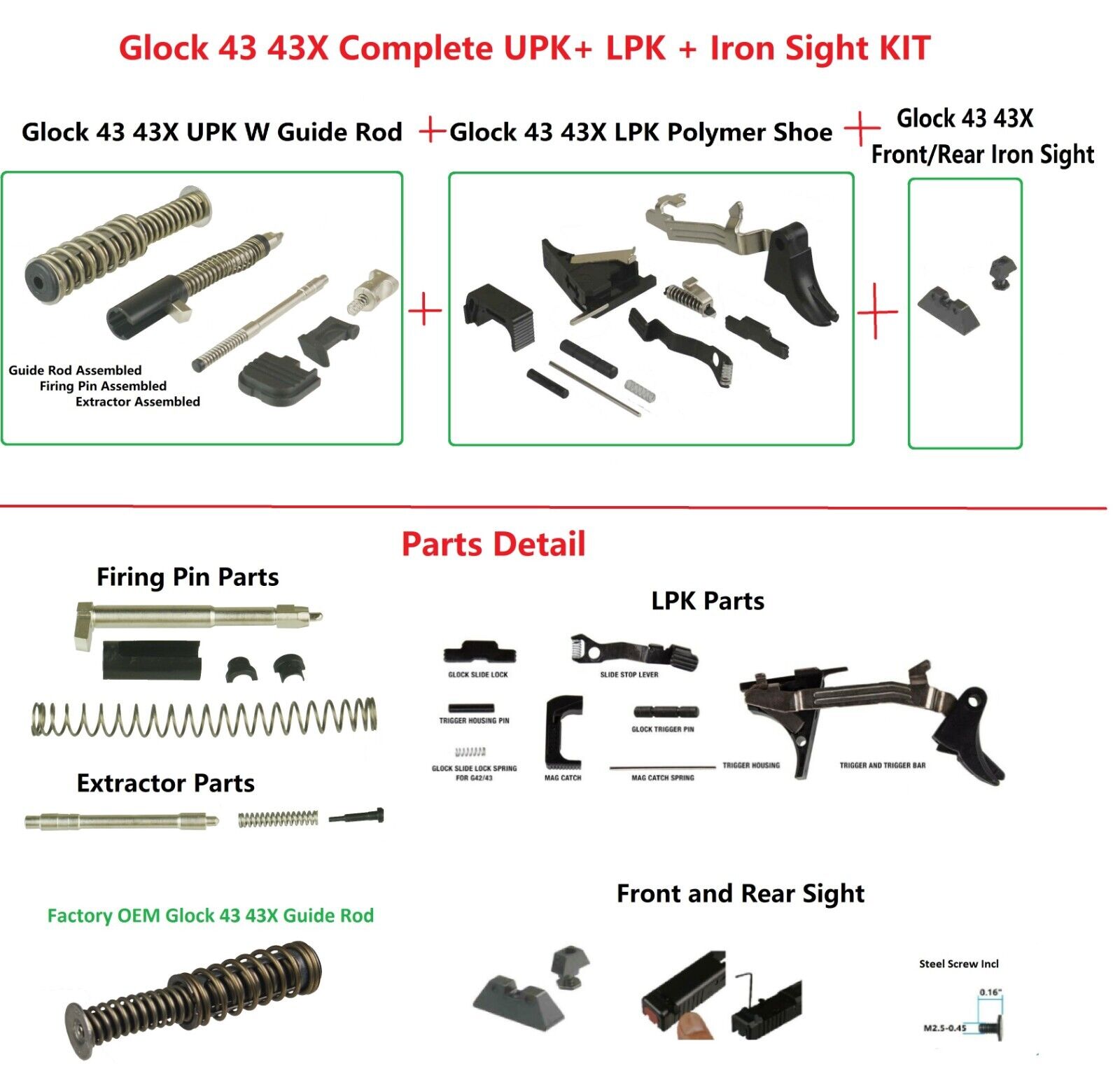 DB TAC Lower & Upper Slide Parts LPK+UPK+ Iron Sight Fit Glock 43 43 48 OEM Guide Rod
