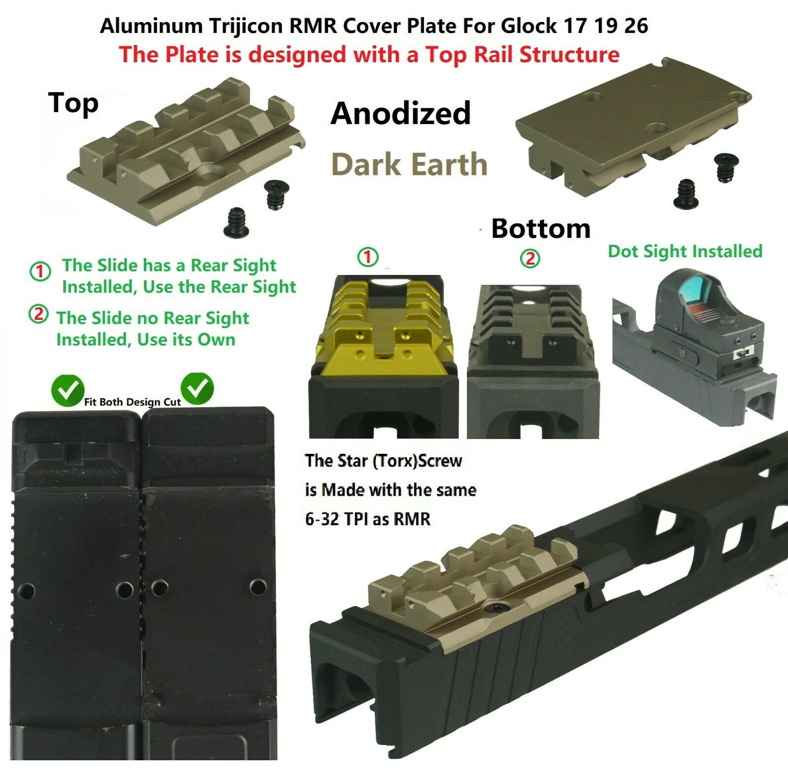 Compatibility: Fits Glock 17 / 19 / 22 / 23 / 26 / 27 / 31 / 32 / 33 / 34 / 35 / 45 / 47 RMR-cut slides