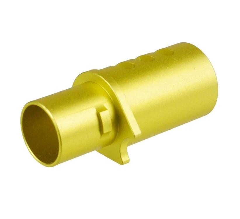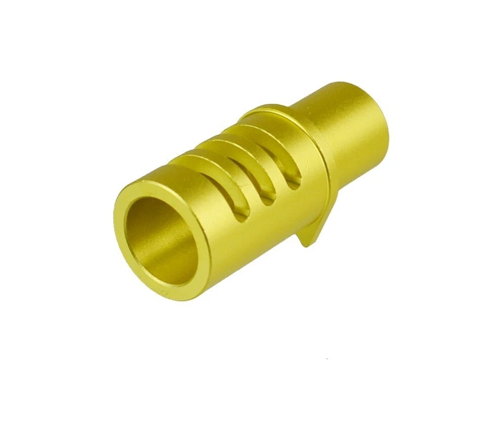 Constructed from 6061-T6 aircraft-grade aluminum with a durable gold anodized finish, it helps reduce back pressure and muzzle movement, improving control during shooting.