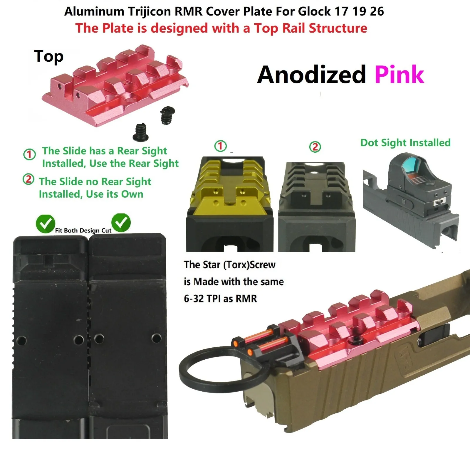 DB TAC Pink Color Mount for RMR Cut Slide Cover Plate With Top Rail for Red Dot Fits Glock 17 / 19 / 22 / 23 / 26 / 27 / 31 / 32 / 33 / 34 / 35 / 45 / 47 Cut Slides