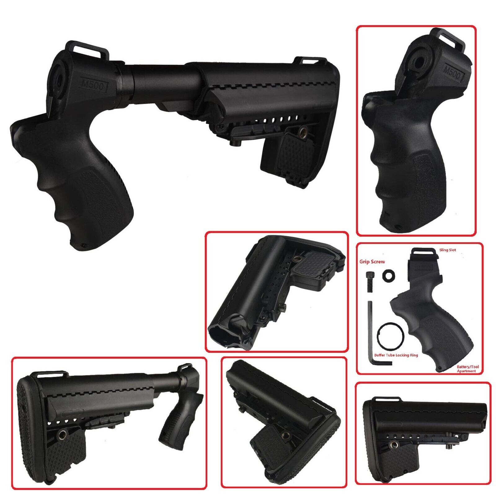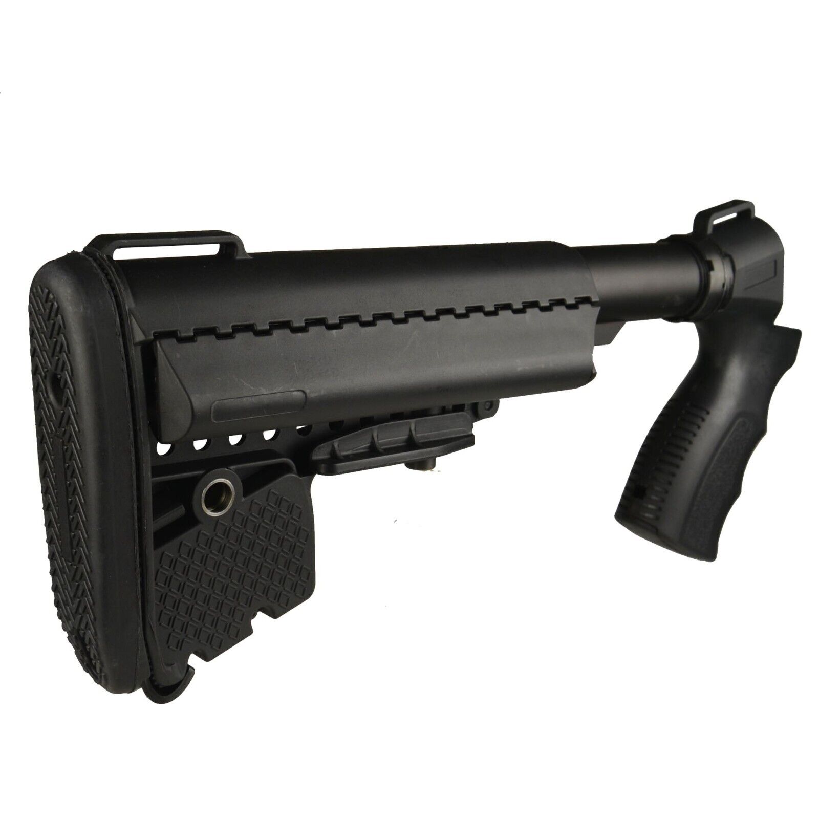 This Mil-Spec six-position collapsible stock set is designed specifically for Mossberg and Maverick pump-action shotguns.