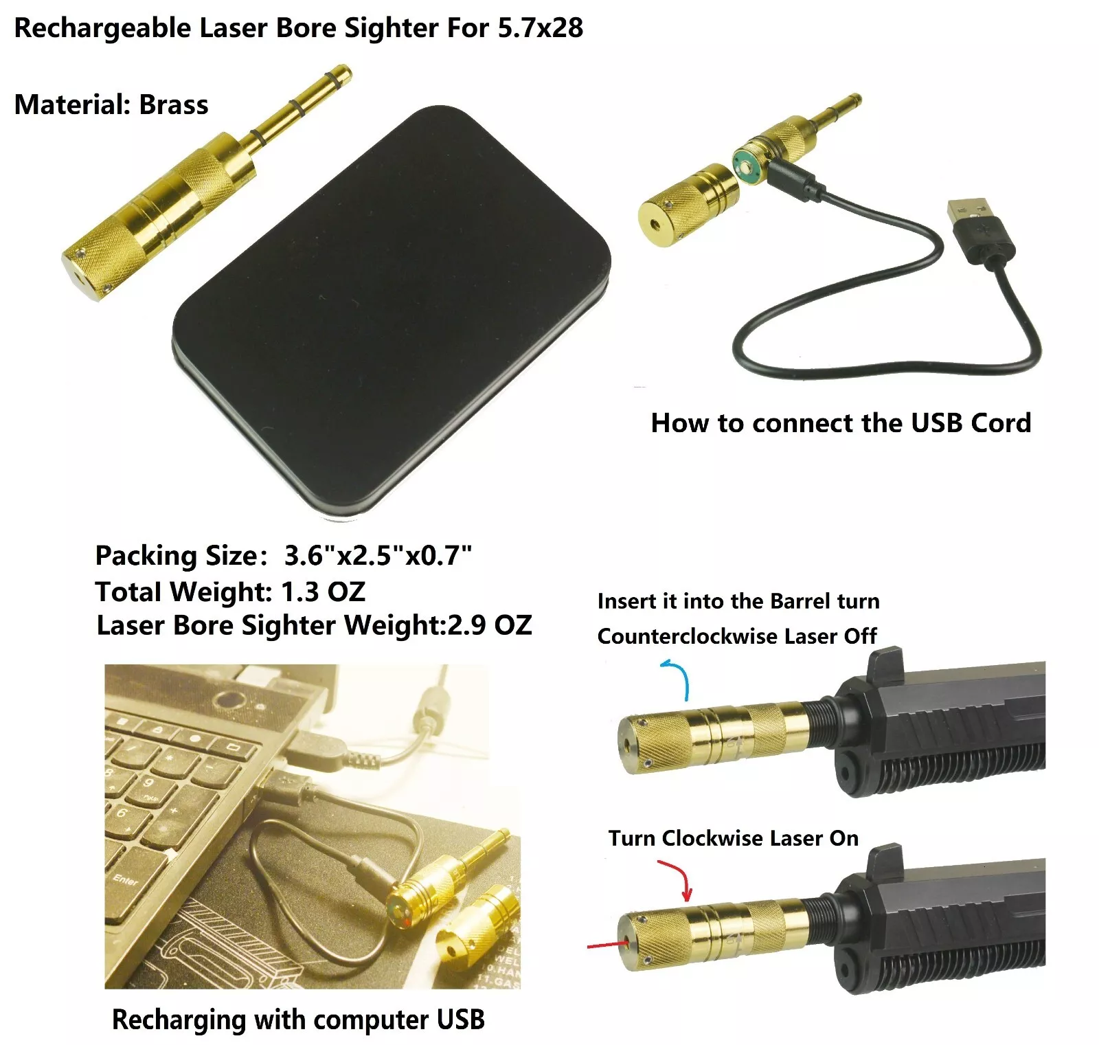 DB TAC Rechargeable 5.7×28 Laser Bore Sighter – Red Laser Front Insert Cartridge