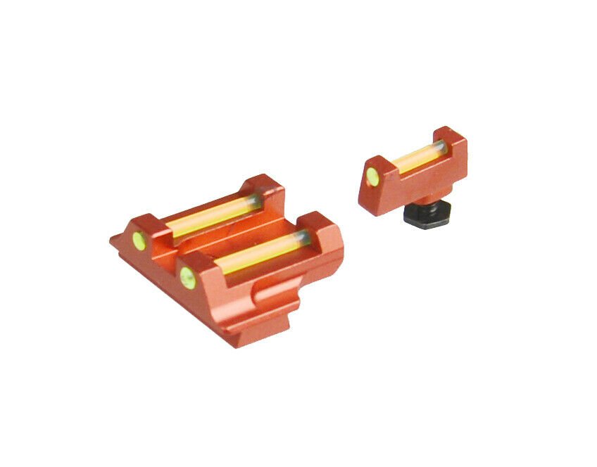 DB TAC Red Aluminum Front and Rear Sight 6.5mm with Green Fiber Optic for GLOCK 17, 19, 22, 23, 24, 26, 27, 31, 34, 35, and 42, 43, 43X Slim Slide