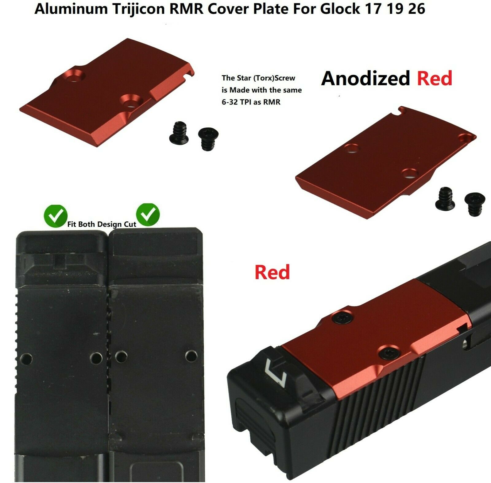 DB TAC Red Color Aluminum RMR Cut Mounting Plate for GLOCK Slide, Aluminum RMR Cover Plate