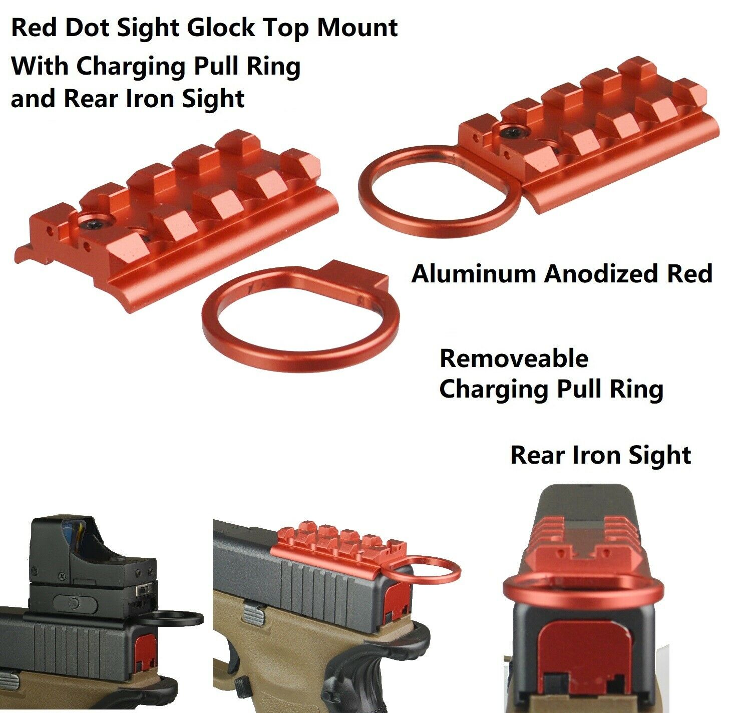 - Aluminum Anodized Gold Color with Rear Iron Sight for GLOCK 17, 19, 22, 23, 24, 26, 27, 31, 34, 35