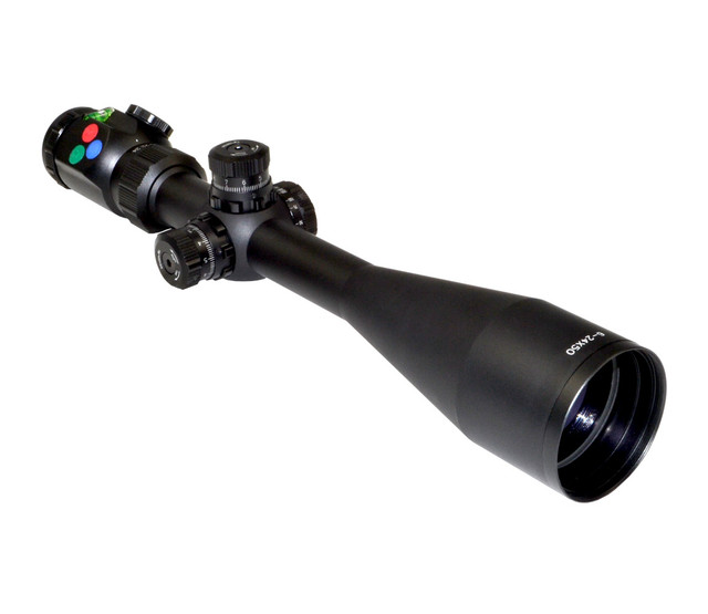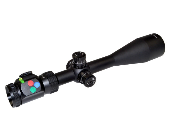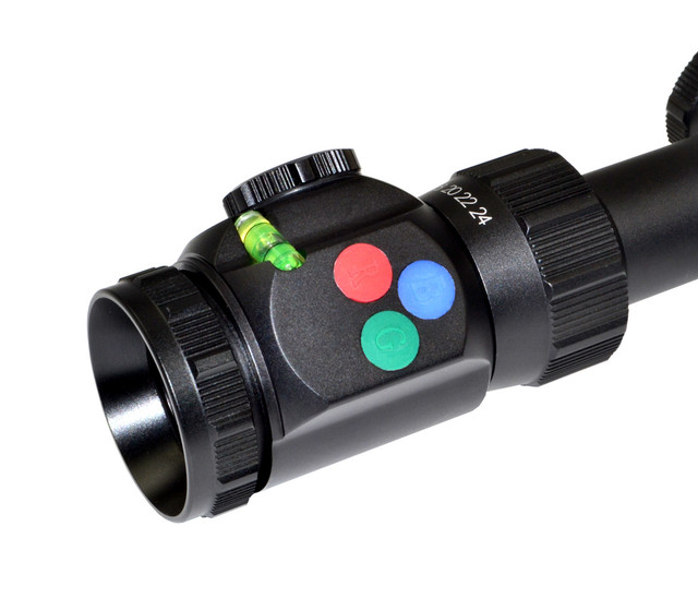 Fully multicoated lenses with ultra wide band coating for crystal clear clarity and durability. Red/Green/Blue RXR Glass Reticle with Side Parallax Adjustment, Level Bubble and Electronic button switch.