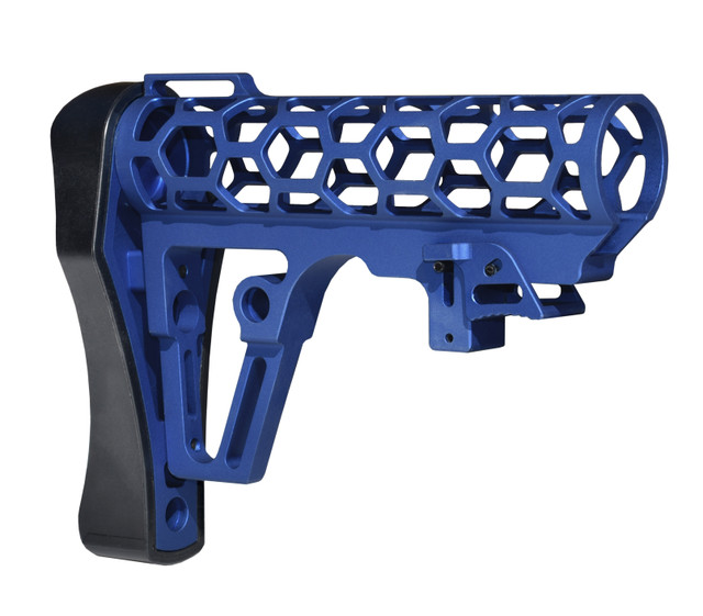 DB TAC Skeletonized 223/5.56/308 Buttstock for 6 Position Mil Spec Tubes, Dark Blue Anodized Aluminum. With Pad