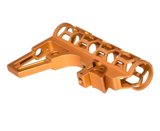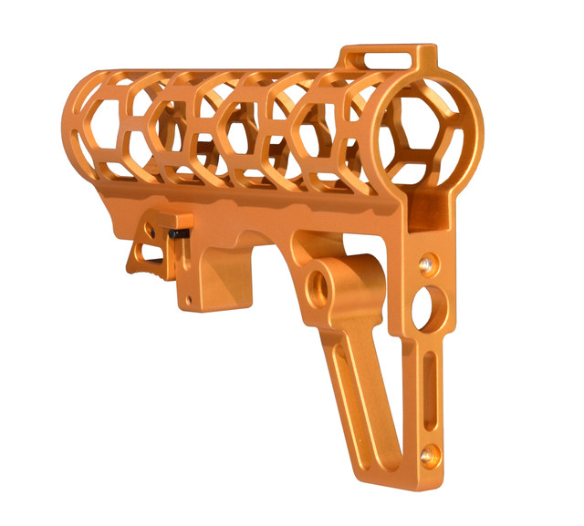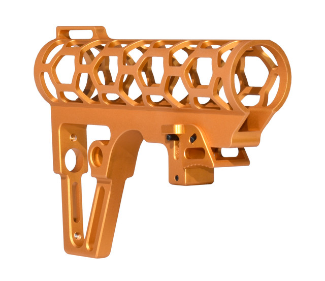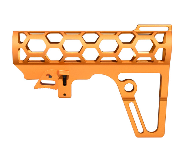 DB TAC Skeletonized .223/5.56/.308 Stock for Mil Spec Tubes, CA Legal Fixed Stock, 6 Position, Made in USA, Orange Anodized Aluminum