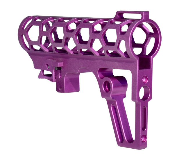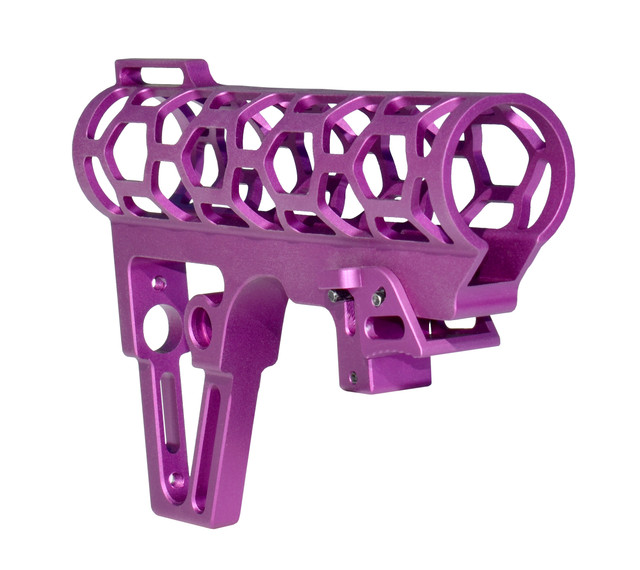 DB TAC Skeletonized .223/5.56/.308 Stock for Mil Spec Tubes, CA Legal Fixed Stock, 6 Position, Made in USA, Purple Anodized Aluminum
