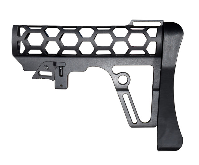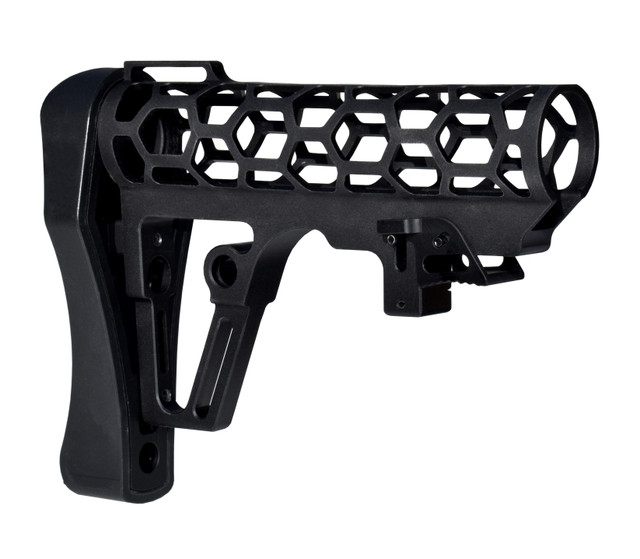– Skeletonized Mil-Spec aluminum buttstock w/ butt plate & recoil pad