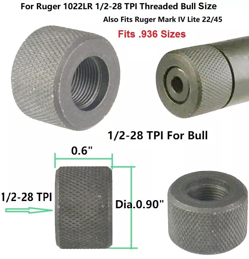 DB TAC Steel 1/2”-28 1/2”x28 Thread .936 Protector For Ruger 1022 Bull Barrel .936 Sizes