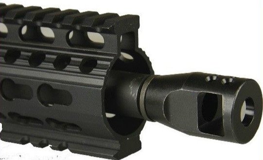 The AR competition muzzle brake redirects propellant gasses and reduces recoil and flash dramatically.