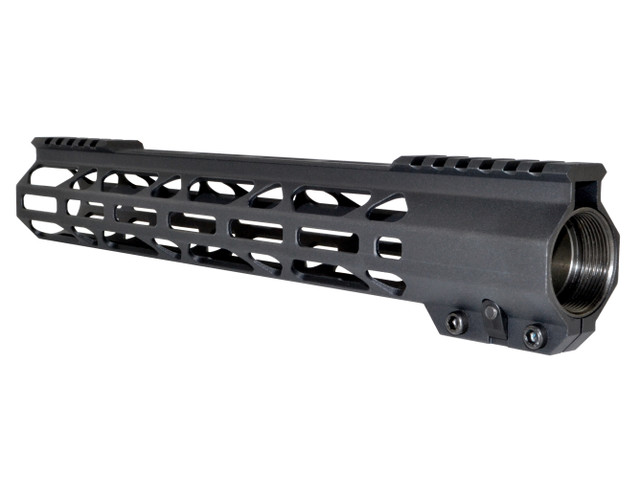 AR-15 223/5.56, 13″ length free float rail mount with partial Picatinny Top rail and M-LOK slot system. Steel barrel nut included. CNC machined from Quality aluminum and black anodized. Super light weight, only 11oz with barrel nut.
