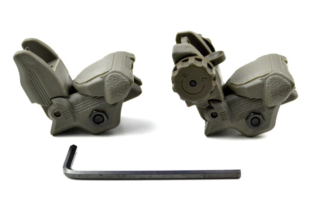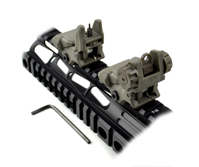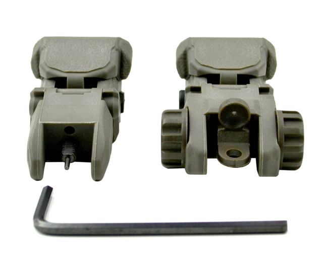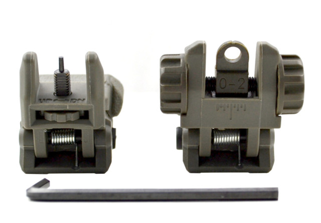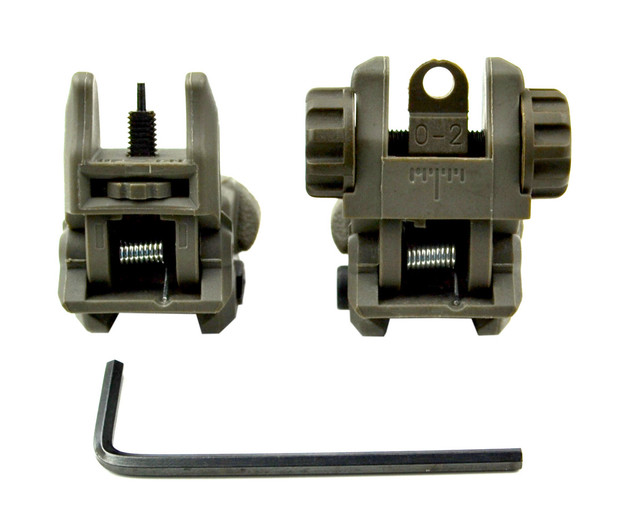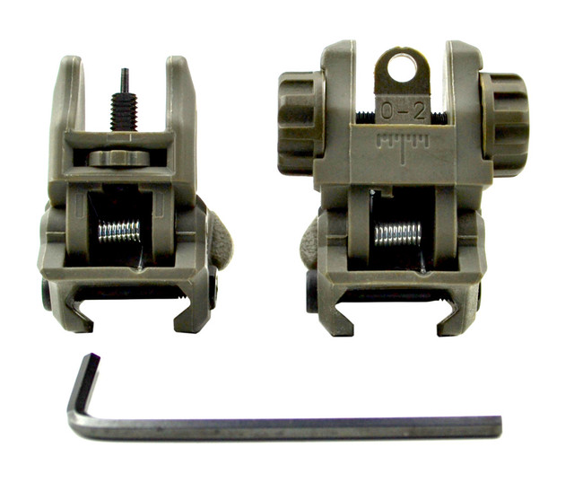 DB TAC Tactical Polymer Picatinny Rail Weaver Rail Front And Rear AR Flip Up Sight Set OD Green Color