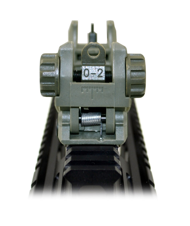 High Quality flip-up front and rear sight towers complete with A2 square post assembly with locking retention and precision elevation adjustments for greater accuracy.