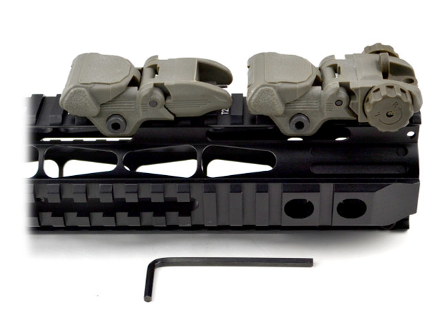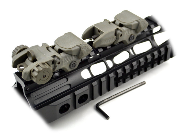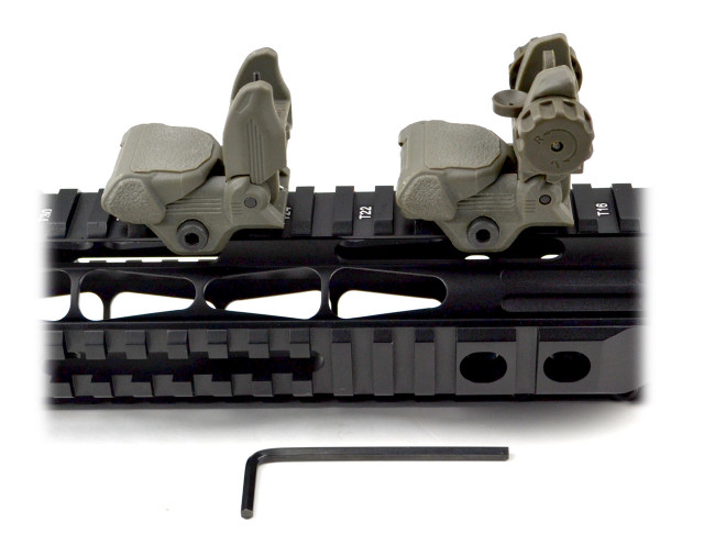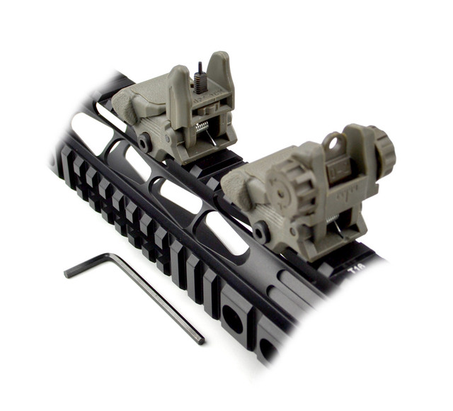 Mounting Decks designed to be used with hand guard rails or front gas blocks (front sight tower) and both will fit all 7/8”. Allen Wrench With Locking Retention For Maintaining Zero Under Heavy Conditions. Tactical Combo Of Front And Rear Polymer Sights. Quick Detachable Front Sight with Adjustable A2 Square Post Assembly to Fit All Picatinny/Weaver Style Rails. Equipped with Locking Retention Allen Wrench and Clever and Robust Flip-up Posi-lock Precision Elevation Adjustments to Enhance Shooting Accuracy. Profile Designed for Installation on Gas Block. Integral Picatinny Mounting Deck to Fit All Flat Tops. Dual Aiming Apertures for All Shooting Requirements. Precision Windage Adjustments. User Friendly Locking With Allen Wrench for Easy Installation. Backup AR15 AR-15 M16 M4 M-4 Flattop A1 A2 Post Back Up.