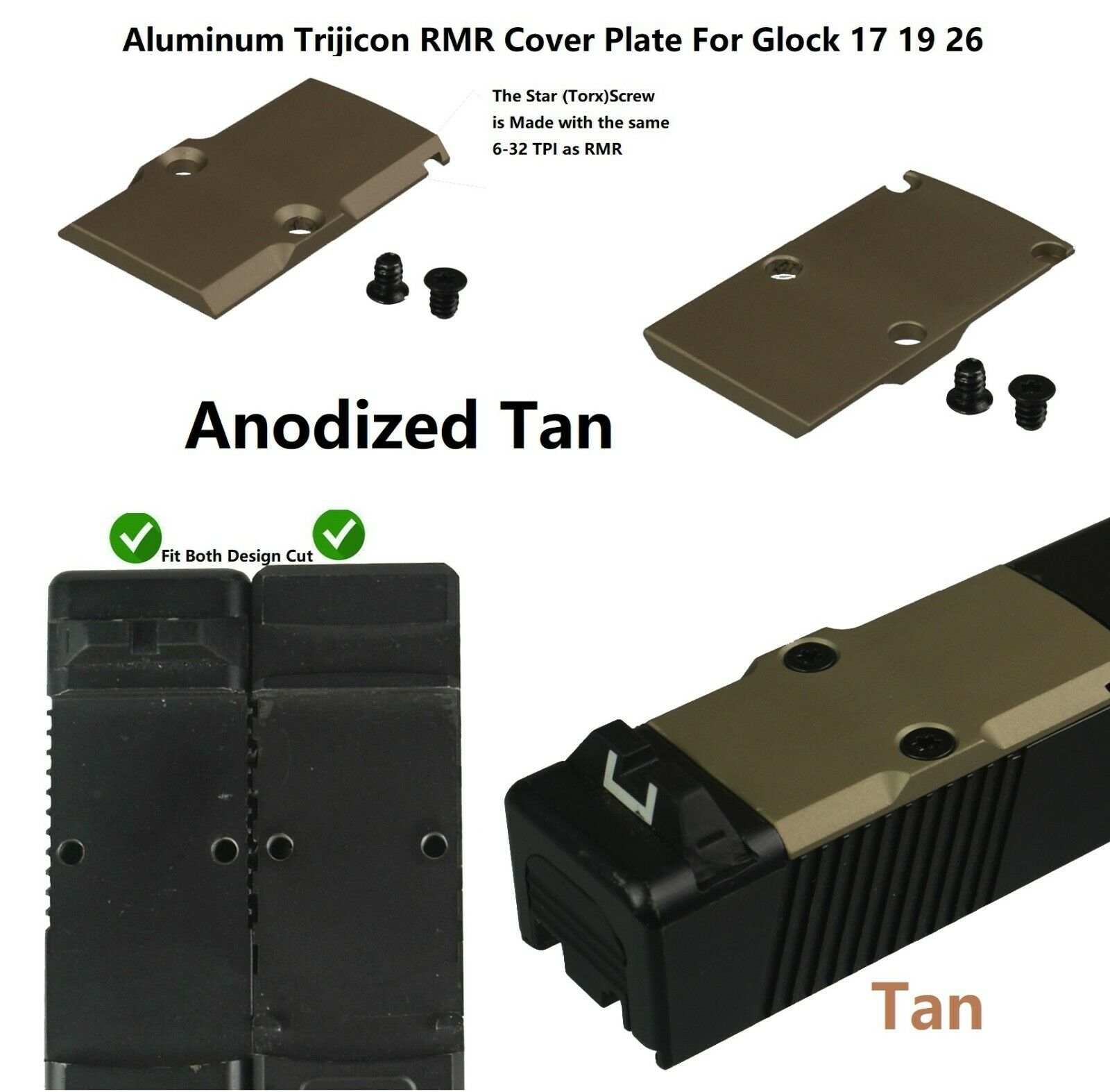 DB TAC Tan Color Aluminum RMR Cut Mounting Plate for GLOCK Slide, Aluminum RMR Cover Plate