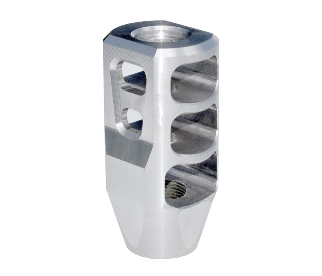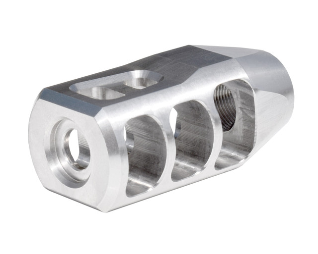 Stainless Steel muzzle brake/recoil compensator, Silver.