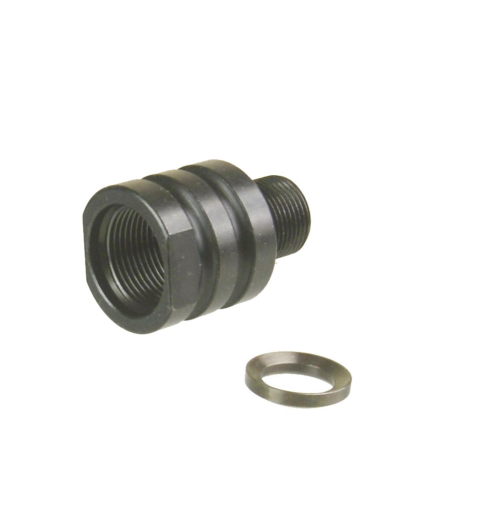 5/8×24 to 1/2×28 Thread Converter – Black Steel Adapter with Crush Washer