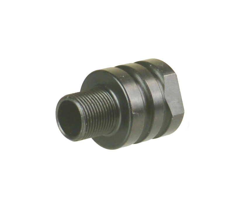 Converts 5/8×24 TPI internal thread to 1/2×28 TPI external thread