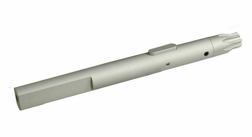 Designed to securely hold an upper assembly for maintenance and assembly, the Reaction Rod engages the splines in the barrel extension, allowing the stress to be placed on the 7075 T6 Aluminum barrel extension, instead of the softer aluminum receiver.