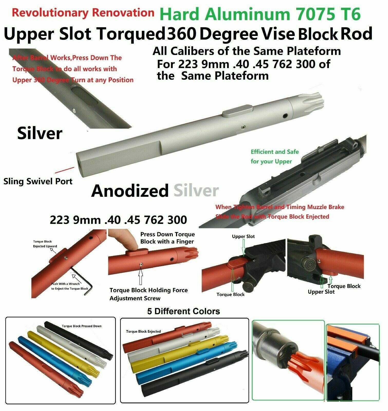 DB TAC Upper Slot Torque Block 360 Degree Vise Rod Wrench Armorer’s Tool .223/5.56 9mm .45 .40 300 7.62 6.5Grendel Plate form Silver Color