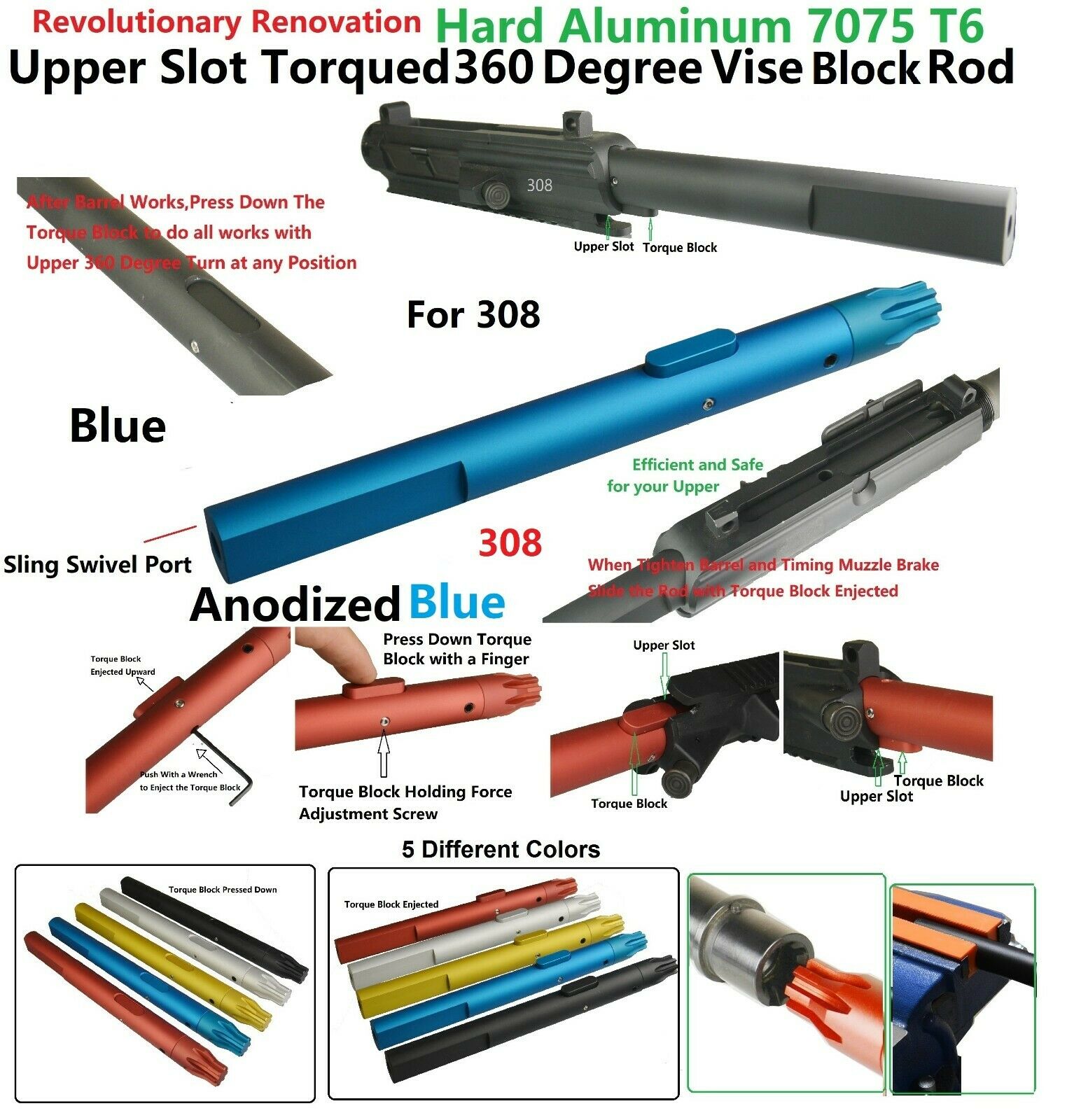 DB TAC Upper Slot Torque Block 360 Degree Vise Rod Wrench Armorer’s Tool .308 Plate form Blue Color